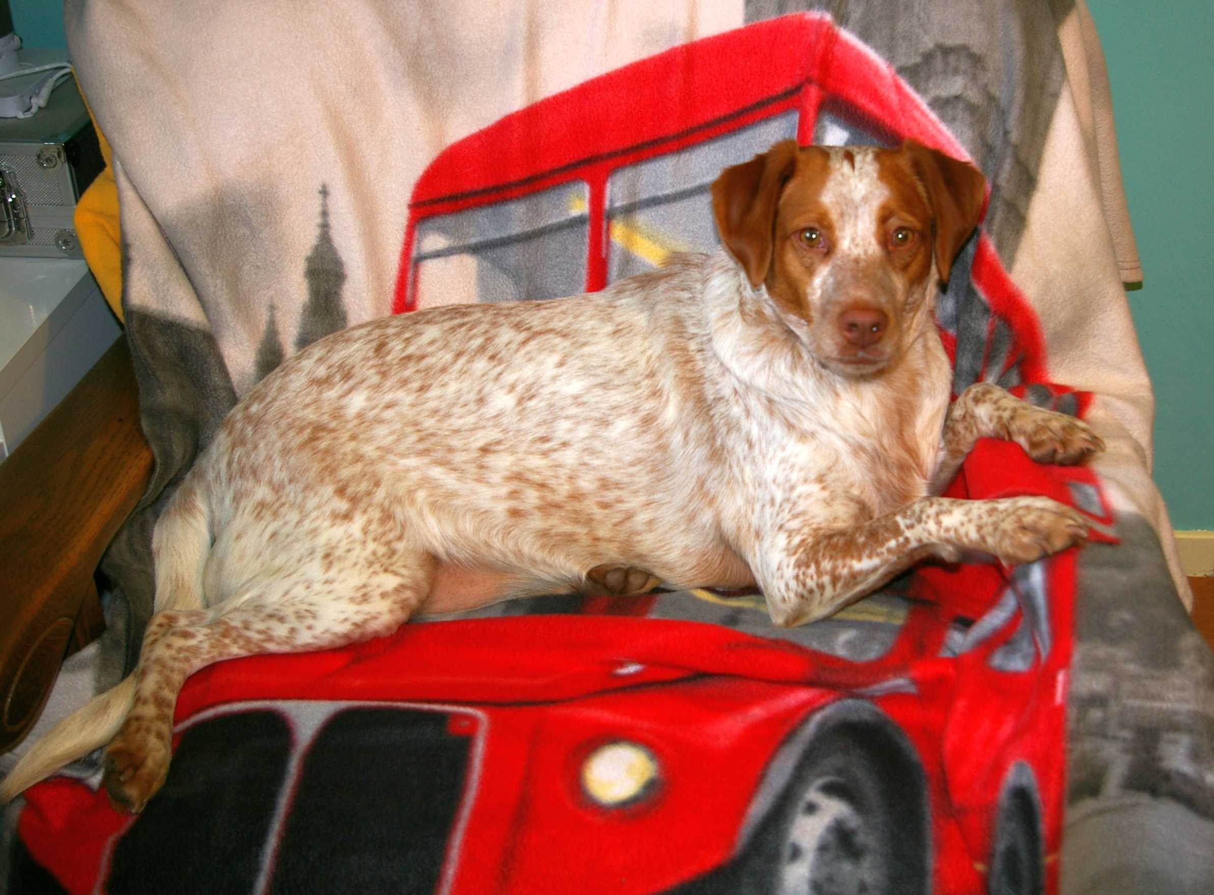 Below: Priyā on the fourth day in her new home. She has made herself comfortable in “her” new chair. She is started to get house-trained and knows and reacts to her new name. She is also getting on better with the cats. She gets on fine with Candy and Yonah anyway. We visited the vet yesterday. 19.25 kg dog - and not much muscles. We got our work cut out.